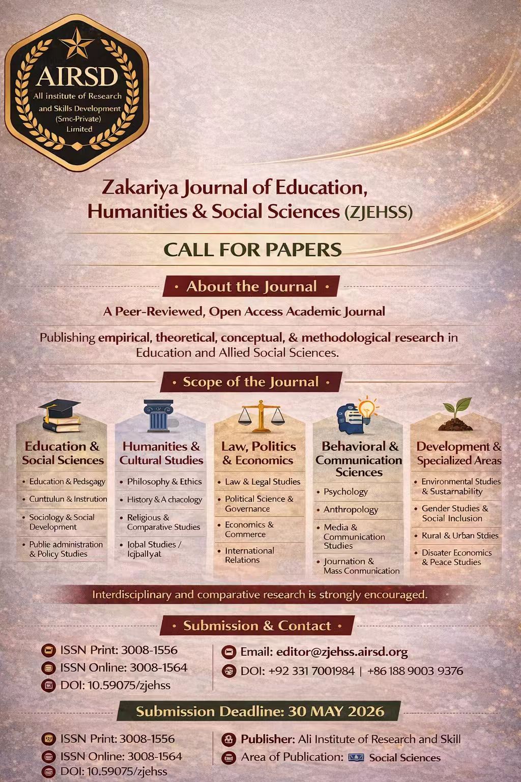 Vol. 3 No. 2 (2025): Zakariya Journal of Education, Humanities & Social Sciences